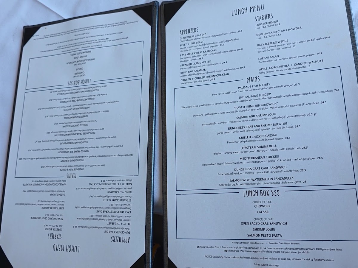 Palisade Menu
